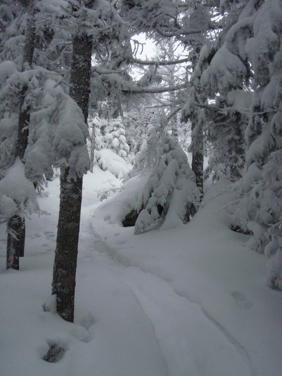 | Rimed + Snowed-on trees near the Moriah summit spur |
